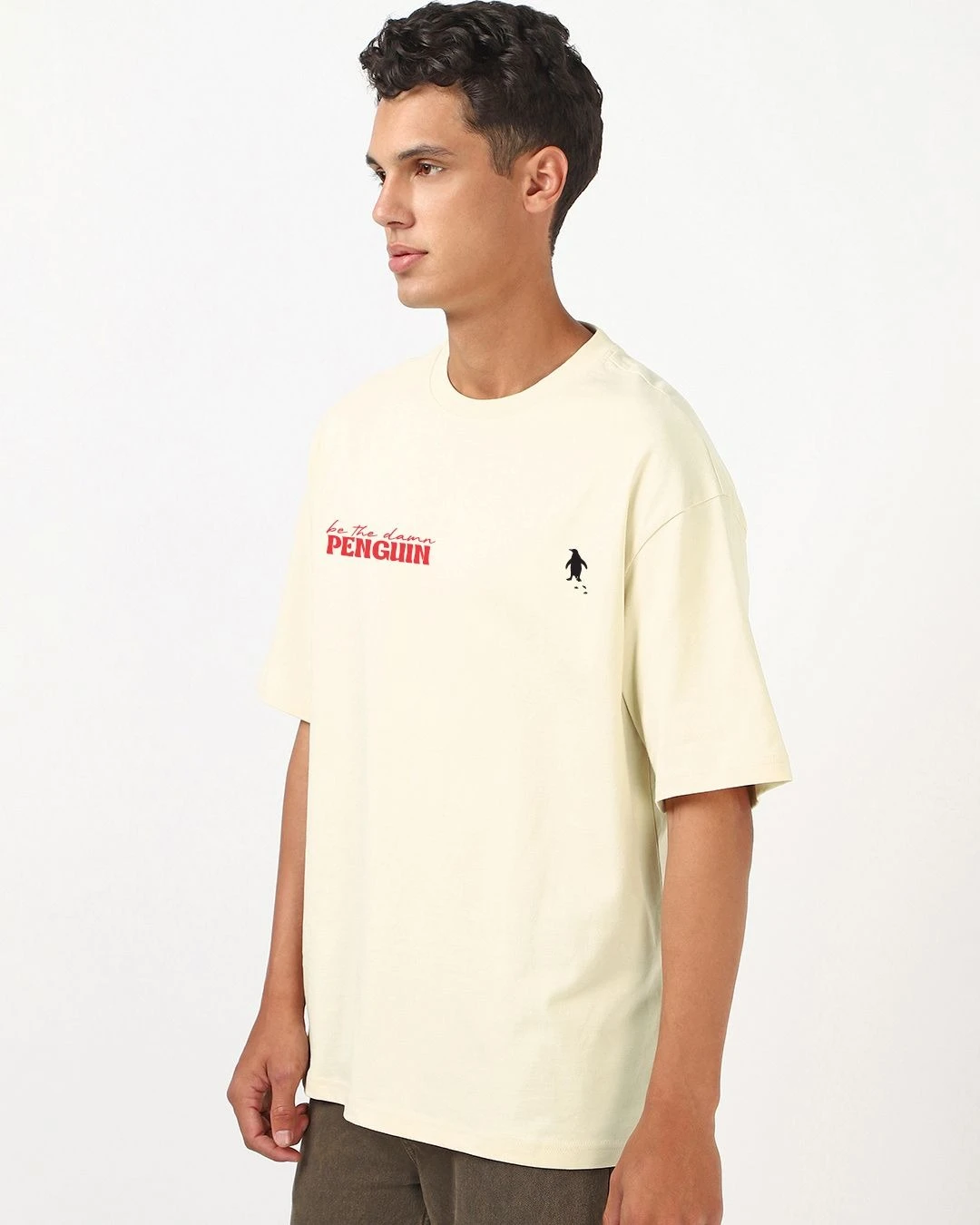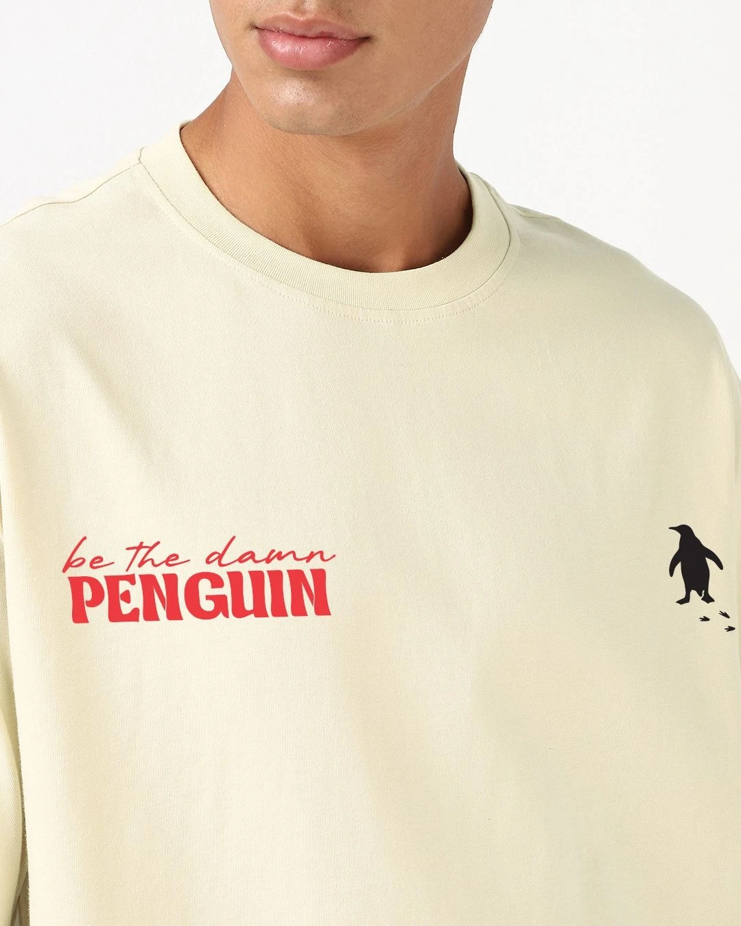 Inspired by the penguin that chose the unknown over the crowd, the Be The Penguin MenÔøΩs Off White Graphic Printed Oversized T-shirt carries quiet courage in a relaxed, everyday fit. Style it with denim or neutral joggers for a calm, go-your-own-way look.